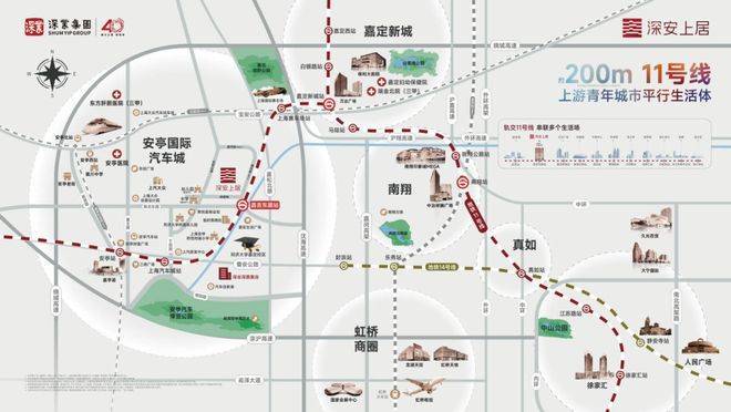 安亭,嘉定新城产业根基所在。庞大汽车产业集群,约 5502.9 亿元规模以上工业产值,带动板块下一个增长极。(数据来源:安亭观微,数据截止时间:2022 年底) 嘉定新城立足打通长三角一体化和虹桥国际开放枢纽的链接通道,构建“一核一枢纽、两轴四片区”的规划新格局。“一枢纽”即安亭枢纽——以安亭北站、安亭西站为核心,无缝连接虹桥国际开放枢纽,打造站城一体化、辐射长三角的综合交通枢纽。(信息来源:《嘉定新城总体城市设计》) 除此之外,上海 2035 规划中的宝嘉线、嘉青松线即将启动,嘉安高速延展嘉定向东,与宝山互通,以安亭为枢纽核心,嘉定再次站在了时代发展的风口之上。