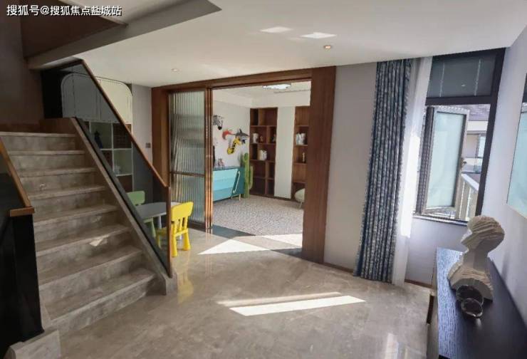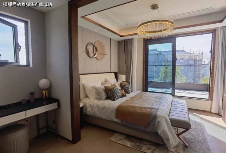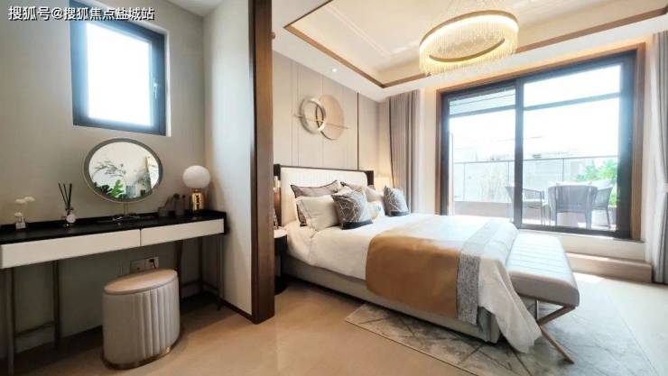 该户型二楼南向卧室有多面采光,这在上海极为少见。超长露台连接起两个卧室,如果家里有两个孩子,各自一个卧室,共通露台供其玩耍,别提有多开心。