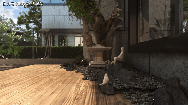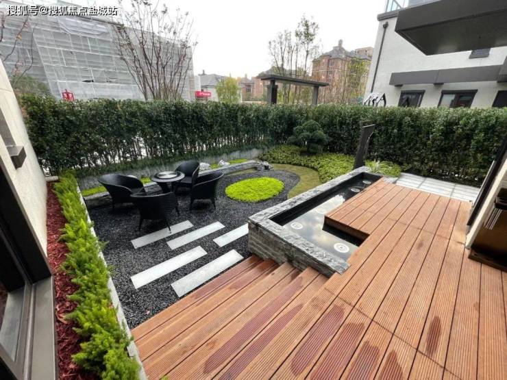 庭前绿地的面积有约40-60㎡,不管侍弄花草、晒晒太阳,抑或叠山理石,都足够了。