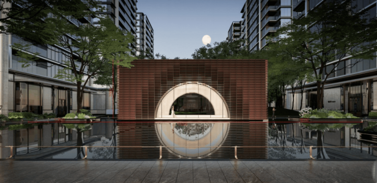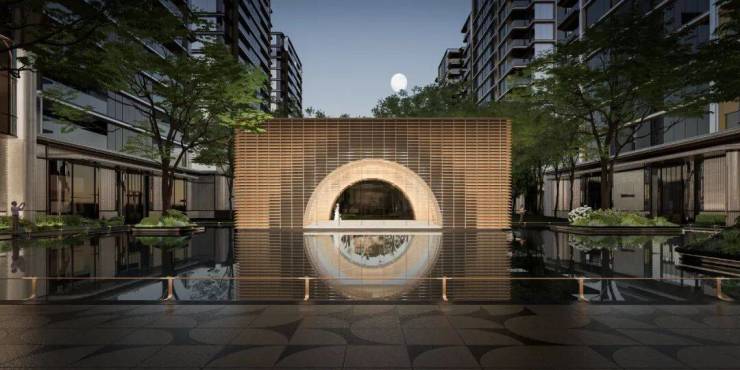 走进高层区,酒店式环岛落客精奢大门、月影图书馆、月照栖谷、海岛风情泳池——这些参与性功能的置入,构建社区功能枢纽,焕活场所活力。别墅区的潮生明月隐奢门庭、溪石苔庭、十二月相中轴巷道、隐园于山——组合成一幅隐山水画卷,让人初到此处就能体验到一种放松清闲的意境。公园区作为社区生活的延伸,以含蓄自然的设计手法,打造自然流淌的共享生态公园。在这里,湖岸边有森林、森林下有公园、公园里有生活,营造可走、可停、可坐、可观、可参与的森林生活剧场。
