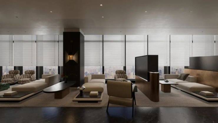 在产品力层面,缦合Verveza彻底颠覆传统大平层逻辑。300-500㎡的纯粹尺度,不是简单的面积叠加,而是通过社交艺境理念打造的圈层共鸣场。26层顶层以4.8米层高构建空中会客厅,标准层4.2米层高搭配全景落地窗,将运河天际线转化为私人艺术展陈。当其他项目还在用奢华装标吸引客户时,缦合已通过空间设计预埋社交基因——这里既是私人领地,更是城市精英的思想碰撞场。