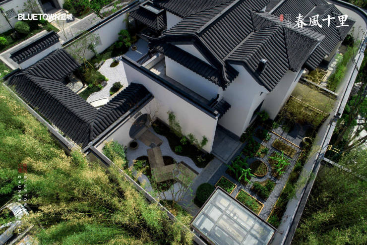 作为“美好生活综合服务商”的蓝城集团,择址安吉县城西南生态谧境,匠心打造健康生活小镇——蓝城·春风十里,地块容积率仅0.44,绿地率37.2%,营造总建筑面积约13万方山水低密住区,规划江南中式合院。
