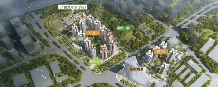 项目自身配建一所幼儿园,以及一所公立的54班九年一贯制学校,目前项目已经正式官宣将引入广州市玉岩学校办学,基本上业主子女在家门口就能实现12年教育。