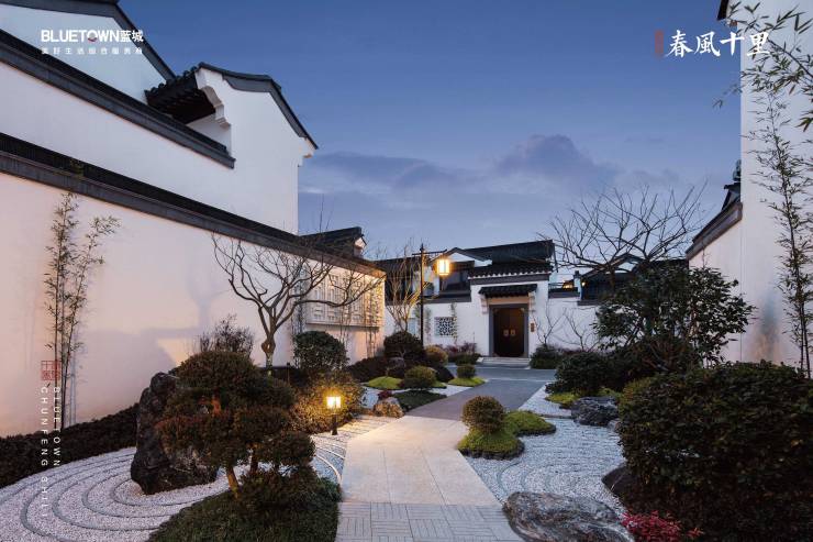 作为“美好生活综合服务商”的蓝城集团,择址安吉县城西南生态谧境,匠心打造健康生活小镇——蓝城·春风十里,地块容积率仅0.44,绿地率37.2%,营造总建筑面积约13万方山水低密住区,规划江南中式合院。