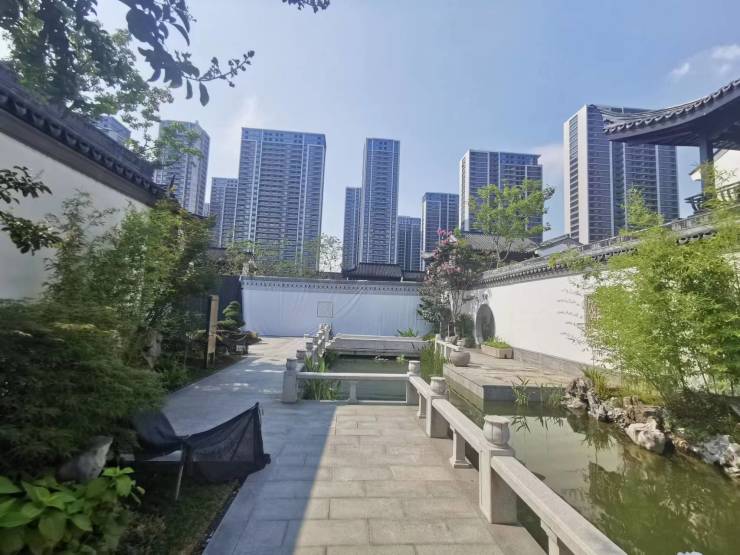 以江南水乡园林为蓝本,中式宅院与园林融为一体,集山水、街巷、庭院、礼制、园林五大意境于一园之内,形成宅园合一的东方理想居住环境。
