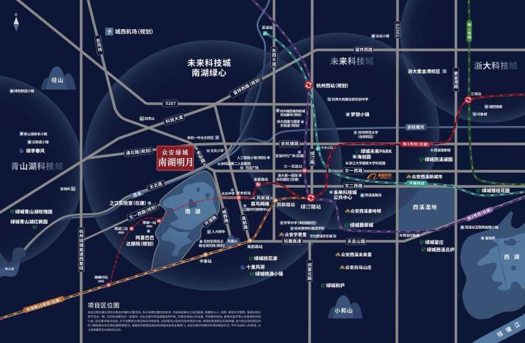 未来科技城“南湖科学中心”为省政府定义的未来科技城三大核心之一。周边布局国家级、省政府主导及各类前沿产业,板块在政府定位高且社会认可,目前为杭州最为炙手可热的区域。