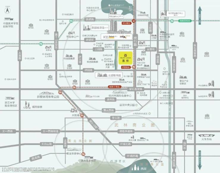 4.【周边高新产业园】:生命科技小镇500米(占地127亩)、华滋科欣创业园500米(占地35亩)、杭州北部软件园600米(占地240)、浙报理想创意产业园680米(占地51,亩)、浙大网新智慧立方580米(占地27亩)、杭州国际人才创业产业园890米(占地15亩)、中国(杭州)智慧产业园790米(占地86.55亩)、杭州市国际会展中心1.8千米(占地580亩)等。