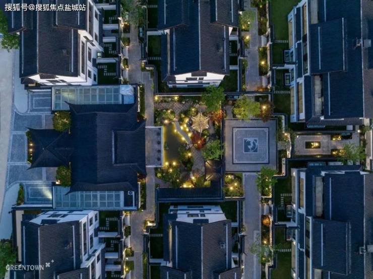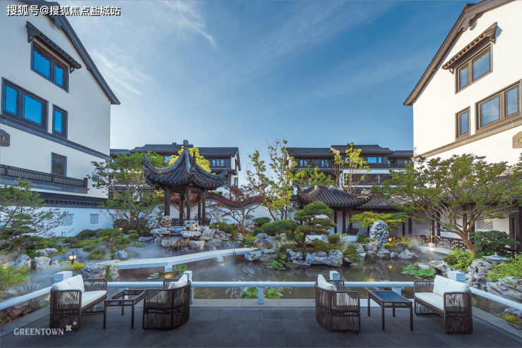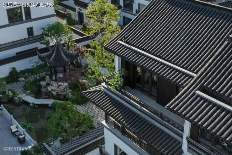 随处可见翩翩雅致的飞檐,赋予建筑以庄重威仪;灰瓦坡顶与小青瓦、通透玻璃、咖色饰板交相辉映,呼应运河岸流传千年的古建名宅,也展现着东方中式的三重神韵。