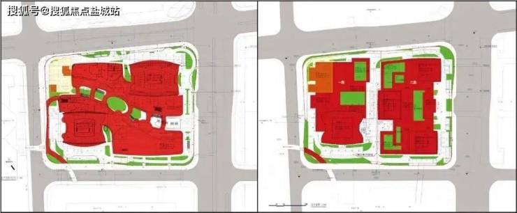 ▲ 调整前(左)与调整后(右)的总平面图对比