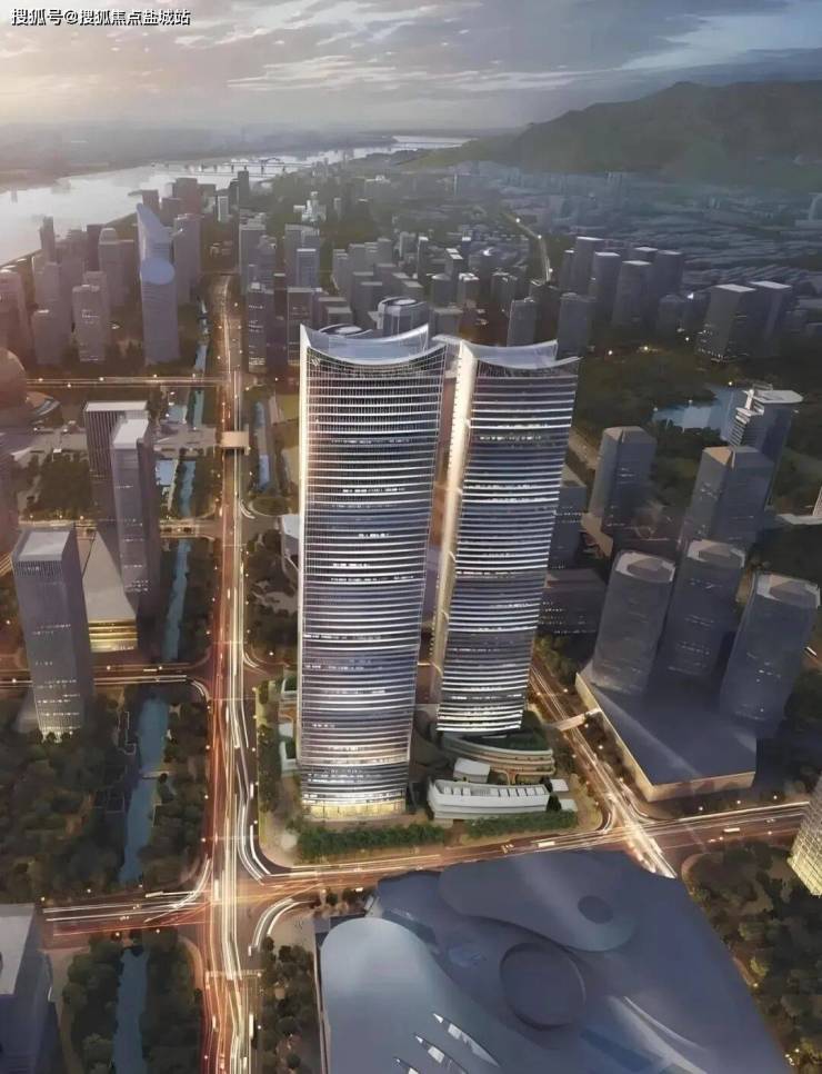 杭州国际中心地块(原钱江新城E-04)的命运堪称中国城市发展史的缩影。2016年,鲁能集团(现中国绿发)以63.5亿元竞得该地块,原规划主塔299米、副塔280米,欲打造"浙江第一高楼";2020-2024年,因航空限高、设计优化等因素,项目历经5次方案调整,主塔高度最终降至190米,副塔保留251米,通过"品"字形布局重组业态;2025年,复工方案一期续建副塔至251米(57层),二期新建3栋塔楼(2栋190米+1栋175米),总建筑面积43.08万平方米,地下空间扩容至4层,计划2028年竣工。