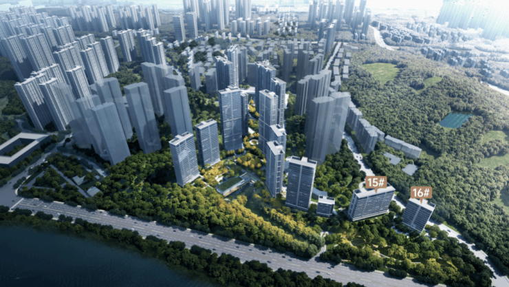 台地式布局,依公园面湘江:项目背靠原生山体,规划16栋住宅,台地式布局。整盘内凹设计,东高西低,错落有致,项目地块比湘江中路抬高约15米,可看江又无噪音烦忧。