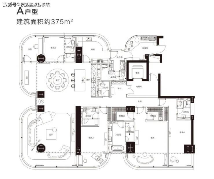 专为家族打造的四套房布局,极致提升家庭生活的私密性。主卧内配置独立衣帽间、化妆间,主卫内巨型浴缸与高端台盆宛如7星级酒店的SPA房间,让身心在日常中沉浸于奢华的愉悦。