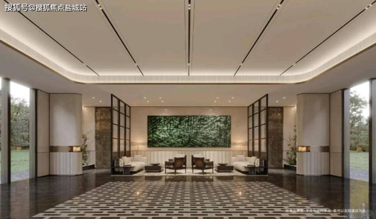在您踏入这个尊贵而温馨的社区,首先映入眼帘的是迎宾大堂。这里充满了奢华、舒适和雅致的氛围,每一处细节都透露出不凡的品味和精致的生活态度。迎宾大堂中,一个蓝翡翠接待台熠熠生辉,它矗立在海纳百川七彩奢石背景墙前,仿佛在诉说着一种不朽的价值。这种历久弥新的奢石,见证了光与美的相得益彰,是品质与格调的完美结合。地面上的闪电米黄和布鲁诺灰的石材拼花,优雅而浪漫,仿佛在引领着一种潮尚生活的新风尚。