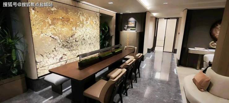 入户大堂,更会感受到一种别样的尊贵体验。顶部仿石材艺术玻璃以其独特的纹理和质感,犒赏着每一位归家的业主。蓝金沙岩板则平添了一份奢华与神秘的美感,让人仿佛置身于一个充满魔力的空间中。而大面积的镜湖春晓岩板,以其淡雅内敛的光泽,带来了一种非同一般的尊贵感。