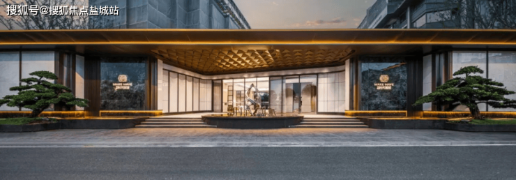 主入口以低调奢华的原材料,展现出闻名门第的酒店风格。精致的迎宾水景、苍劲有力的罗汉松,以及蓝翡翠般的奢石,为城市天际线增添一份神秘与奢华。独特的异形仿铜星空顶设计,巧妙搭配香槟金色斜角造型铝板和闪耀灯光,诠释了艺术美学的完美碰撞。