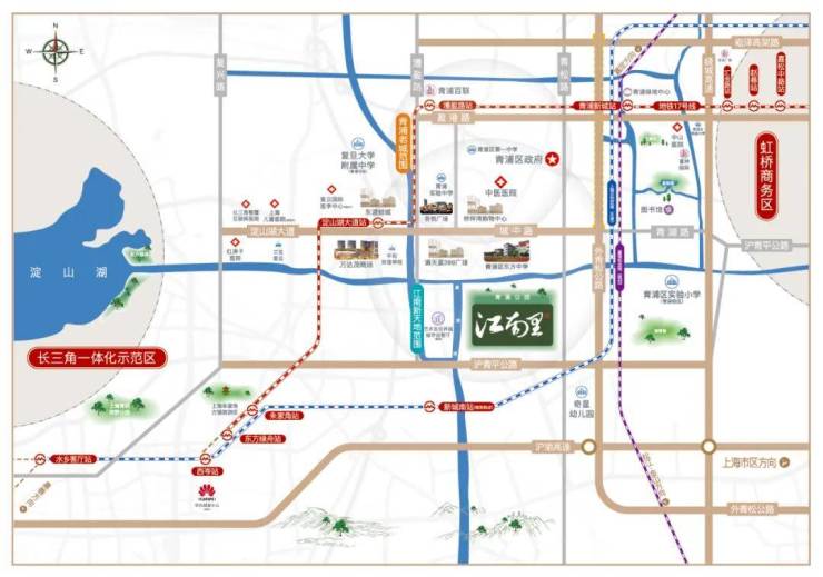 与上海大虹桥的繁华保持恰到好处的距离,仅约26公里的直线距离,让宁静与喧嚣自如切换。朱家角古镇的古色古香,淀山湖的碧波万顷,均在咫尺之间,静候您的探访。而虹桥商务区核心区的商务氛围,同样只需约26公里的驱车距离,即可轻松触及。