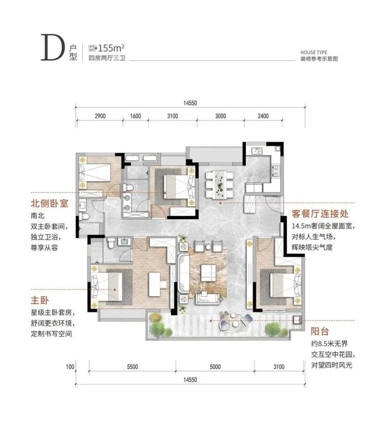 建面约155㎡的尊享户型