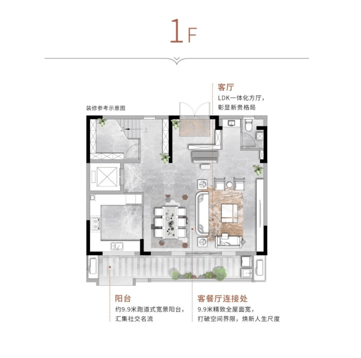 作为改善型客群的梦想置业,建面约288㎡的联排别院满足了几乎每个人理想中美好人居的条件。