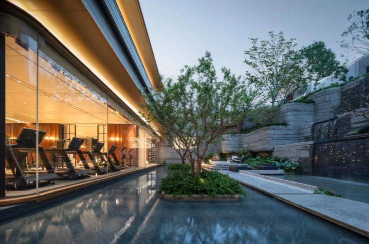以文化底蕴与实用功能为出发点,规划六大功能地下会所、三大泛会所、主题架空层等。地下会所规划设置恒温泳池、健身房、私宴厅、瑜伽室、SPA室等功能空间,满足高知新贵志趣生活日常。