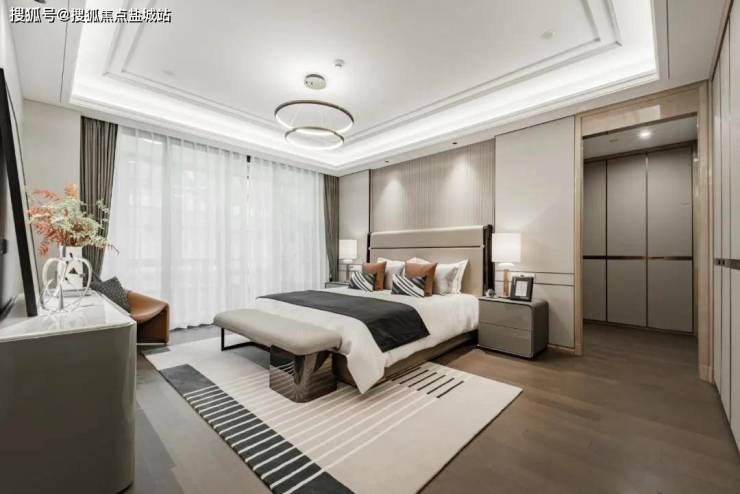 加之独具设计感的卧室背景墙、奢阔L型衣帽间以及拥有转角玻璃窗设计的卫生间,整体居住品质感跃然可见。此外,云栖名筑保姆房和洗衣房也是标配,双入户的设计,敬享尊贵。
