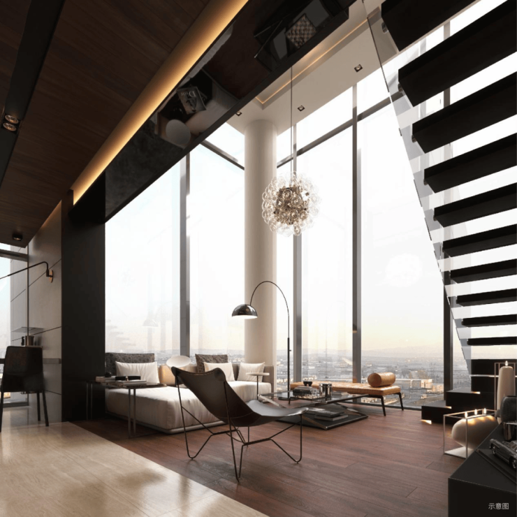 超高层高设计(约3.2m-3.5m),远高于传统层高,采光自然,视野明亮,自享从容天地;