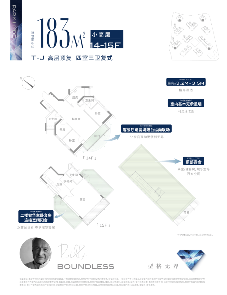 183高层复式户型,四室三卫,套总价1140-1169万(套均总价1154万);