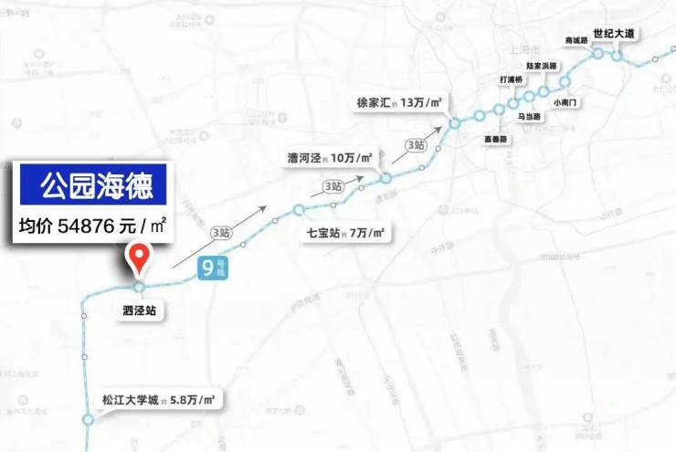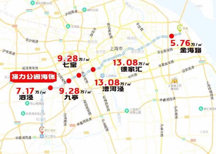 盘点一下9号线沿线房龄10年以内、有电梯的普通住宅小区近一年成交的最高单价,泗泾的二手地铁房目前最高单价在7.17万/㎡、九亭是6.28万/㎡,徐汇和漕河泾是13.08万/㎡,就连以动迁房居多的浦东曹路也到了5.76万!