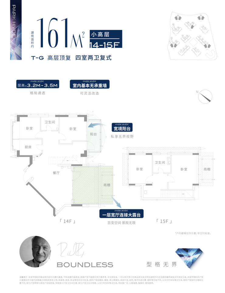 161高层复式户型,四室二卫,套总价1007-1034万(套均总价1021万);