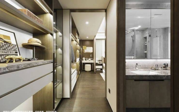 以星级酒店标准打造的主卧套房,将双飘窗、卫浴间、梳妆区、衣帽区合理排布,最大限度地将舒适美学融于日常起居。预留约6.4m衣帽空间,让个性品位得到妥善的收纳和展示;双盥双浴独卫,以一扇飘窗升维生活品调,尽兴享受私密的松弛时刻。