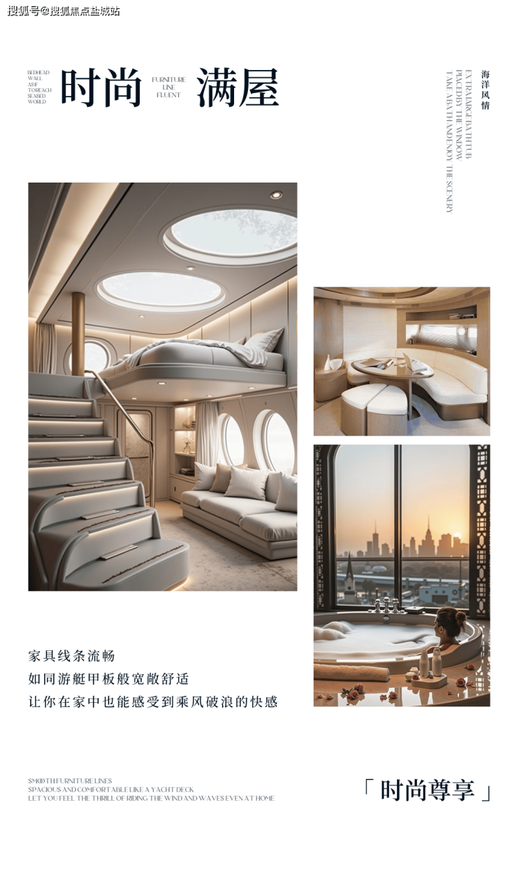运用了游艇的流线型布局,打造出宽敞、通透的空间感。