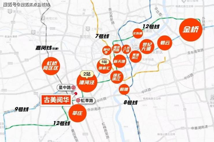 产业层面,漕河泾是上海产业龙头、万亿级产业园。古美阅华直线距离漕河泾仅2.5km,地铁2站直达。