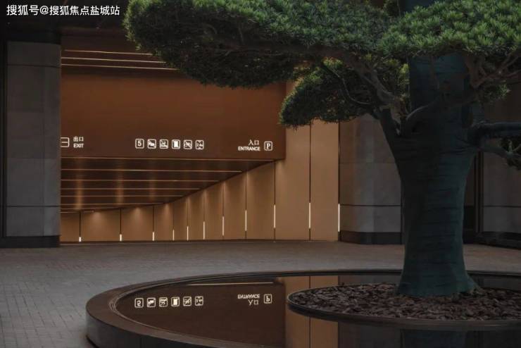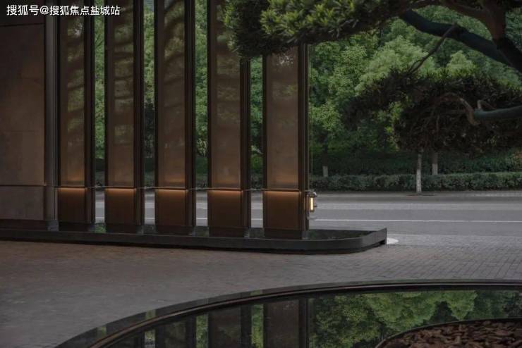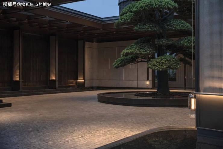 示范区本身是酒店式公馆的一部分——作为杭州的顶奢豪宅,示范区本身的入口(大门),以内庭的手法、带顶的界面、孤植松树,最大化的表达场地的领域感,围合的界面也让人的体验更加聚焦从城市界面进来后的自然内庭。