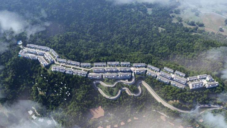 沿最美归家盘山路,来到海拔约500米峰顶上的诗意居境——云澜山居,飞鸟啼鸣,草木繁茂,南北侧的约700米宽屏山景视野,起伏的群山、连绵的梯田、潺潺的流水皆清晰可见,而一座座在山林间若隐若现的山居奢作,则让人站在世界仰望的高度,看见时代人居美学的天际线。