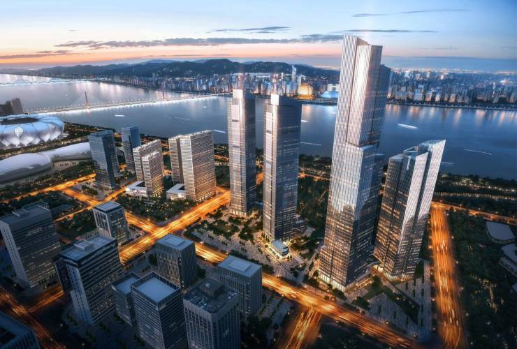 正如上海外滩、纽约帝国大厦地标性超高层建筑群,IOC也于百米之上,以大面积玻璃幕墙勾勒“视觉系”美学建筑,成为世界记住杭州的黄金名片!