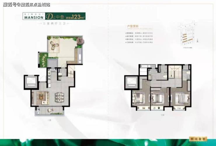 2复3的131㎡中叠户型,三房两厅三卫