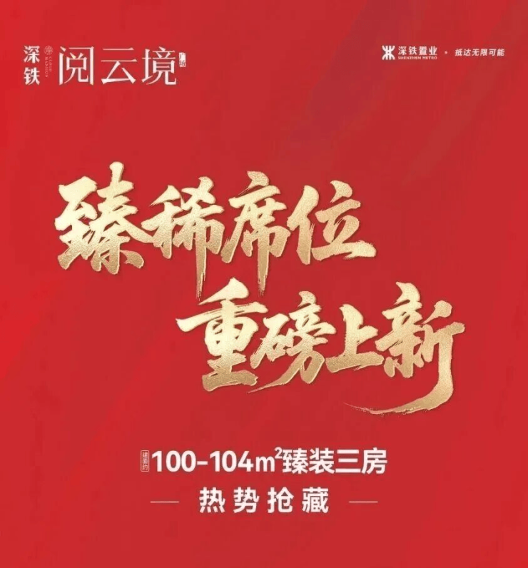 深铁阅云境,作为深铁置业“境系”作品,以前沿理念定义人居标准,精研人居空间尺度,考究生活的每一处细节,敬呈建面约100-104㎡深铁好房,匹配高品质理想生活。