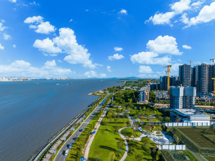 清晨,沿着江岸线骑行、漫步、看日出,在公园里一家人野炊、露营,都非常惬意。