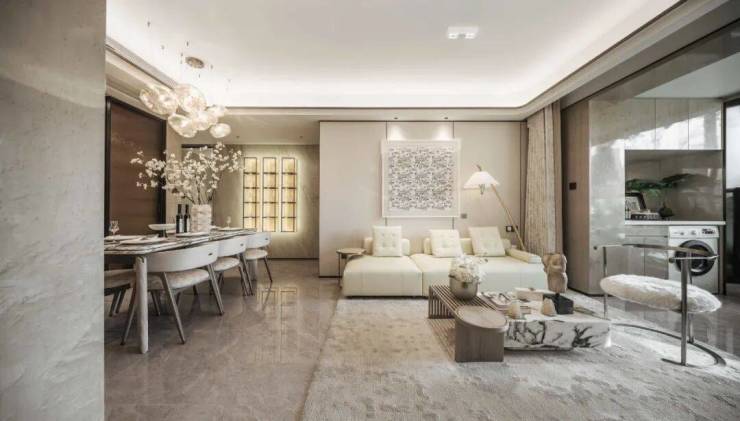 这会导致各个空间的尺度感都会更宽绰,尤其是餐厅,可以放一个容纳6-8人的餐桌,可供一家人享受天伦之乐。