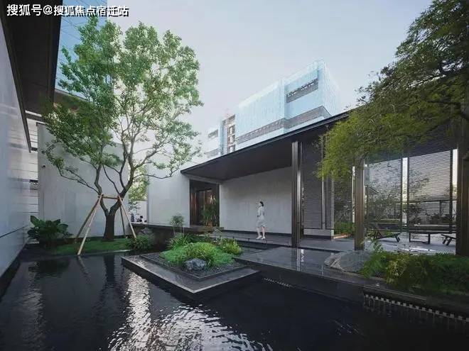 穿过门堂,便是宽阔的琉璃光院。长20米,宽6米,以琉璃为设计灵感,运用光线、镜面水、简约植物池和跌水等元素,绘制出一幅绝美画卷。琉璃与水相互辉映,宛如时空之门,每一处空间都实用且美观。