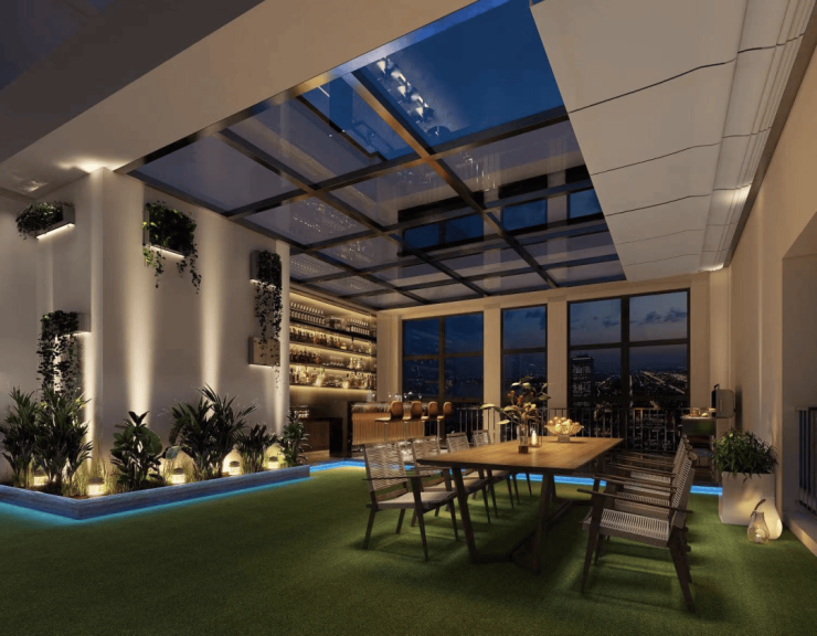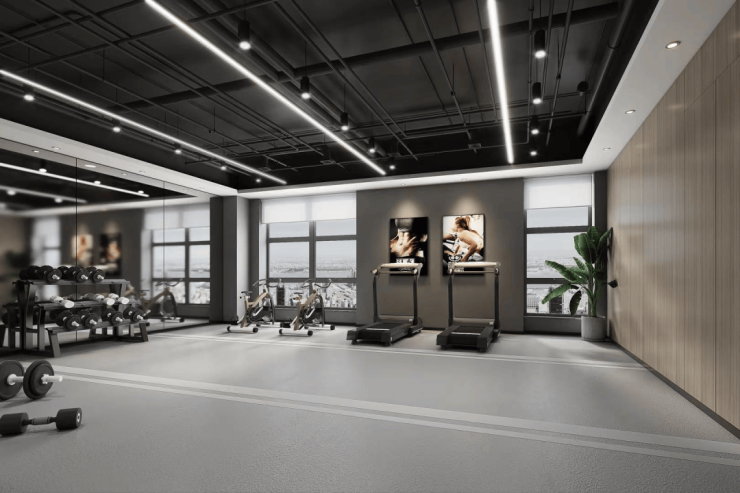 其中最大的特色,在每层设有功能区域,例如健身房,瑜伽室,早餐烘焙,自助迷你咖啡吧,儿童活动室,空中花园等等一系列的设施配套。