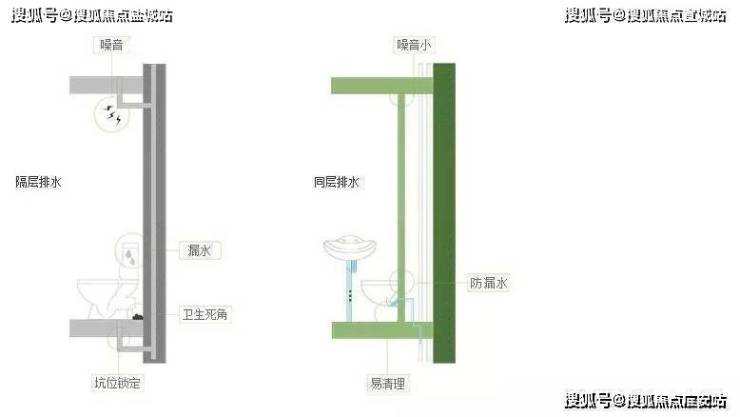 卫生间采用同层排水系统和防水粘结系统:采用瑞士吉博力同层排水系统,将马桶水箱连同各类管道全部隐藏至隐蔽式墙体内,节水率高达50%;隐蔽式墙体安装,保持建筑结构完整,寿命长,易检修。