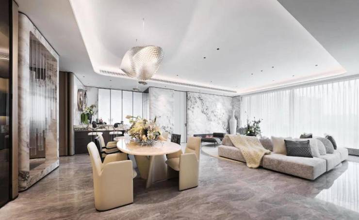 再来看那约385平方米的奢华府邸,它超越了空间的界限,以超百平方米的餐客厅,展现了前所未有的宽敞与自由。同样出自郑忠大师之手,翡丽385不仅占据了项目的核心位置,更以其独特的视角,将窗外的绿洲花园尽收眼底。270度的宽阔视野,让每一次凝视都成为一场视觉的盛宴,仿佛整个世界都在你的窗前缓缓铺展。在这里,生活不再只是简单的居住,而是一场关于美的探索与享受。