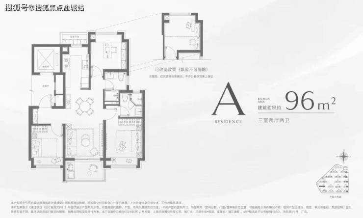 这个96㎡的户型,不仅实现了3房功能性一步到位,还有2卫配置!降低当下置业成本的同时,未来在二手市场也能抢占先机!