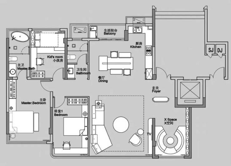 123平方户型平面图