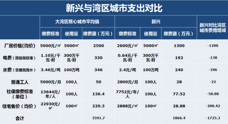 新兴位于粤西中枢,更有利能耗大的企业在入园后水电成本上有明显优势,区域工人工资成本也较低。