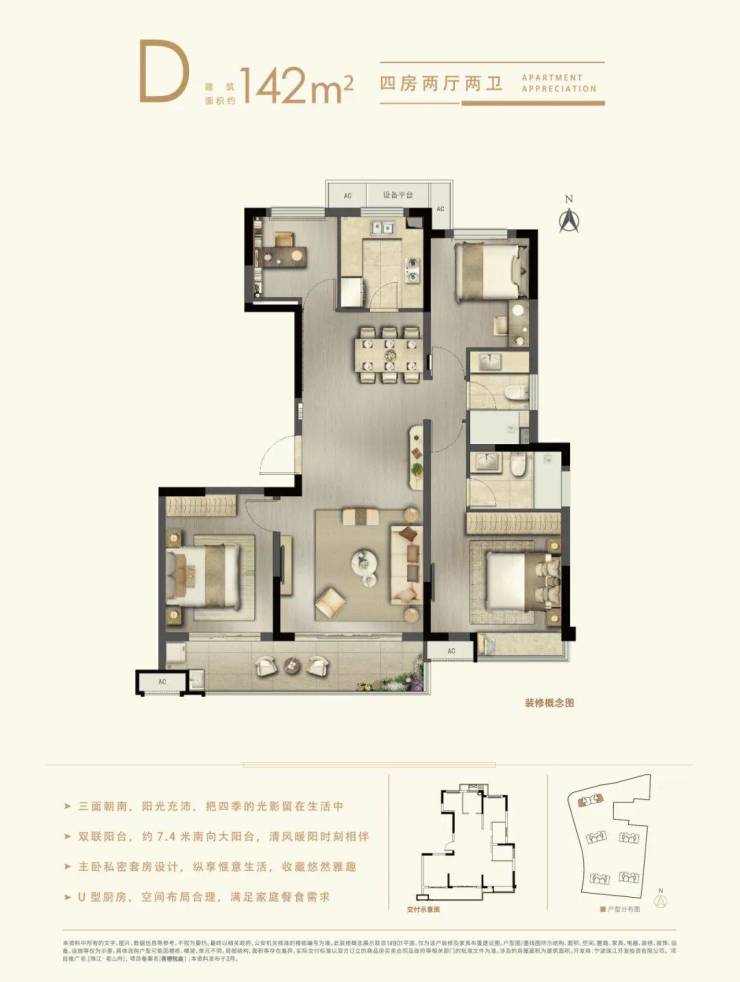 大有可为,尺度由你。选择茗栖悦庭建面约142㎡户型,大空间给你更大享受。阔尺的居住空间代表着生活的多一处留白和无限的居住可能,更是N种生活方式的延伸。