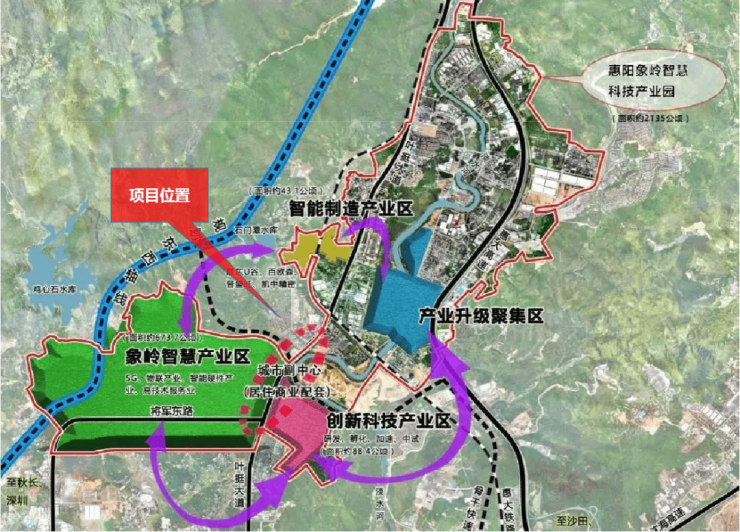 惠阳(象岭)智慧科技产业园,作为惠阳首个千亿级高新技术产业园,开辟象岭智慧、智能制造、创新科技、产业升级4大产业聚集区,项目地处4大产业聚集区中芯地带,汇聚成熟的居住商业配套资源。产业园按照“一园四区”布局打造,力争2025年产值突破500亿元、2028年突破1000亿元。基于临深的区位优势产业园主动承接深圳产业外溢,将集聚更多政策红利、人才技术等城市优渥资源,同时对标深圳南山科技园,成为惠阳经济重要增长极。