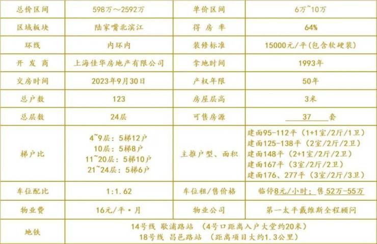 梯 户 比:低区5梯12户、中区5梯10户、高区5梯6户