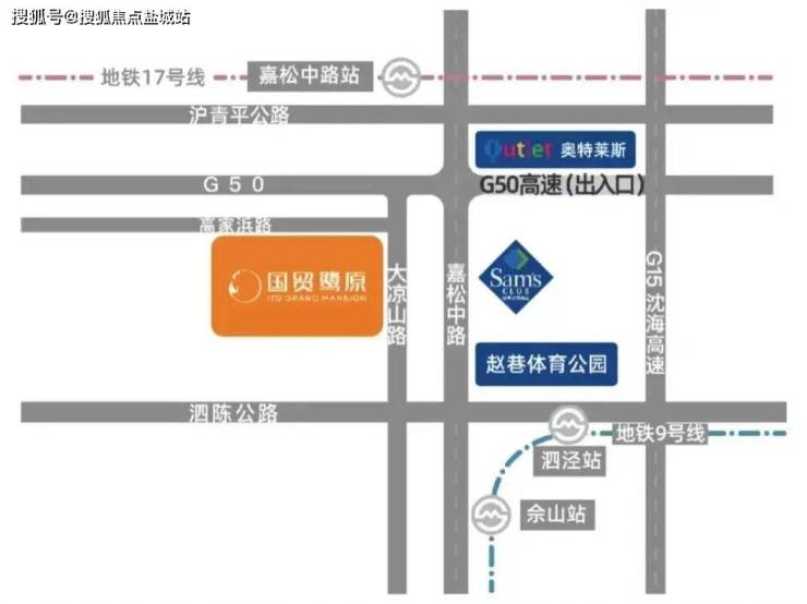交通方面,项目距离最近的地铁站是9号线佘山站,步行有一些距离,日常出行需依赖自驾。约2.5公里即达G50高速入口,临近嘉松中路、沈海高速、嘉闵高架路等主干道,可以快速直达虹桥商务区。