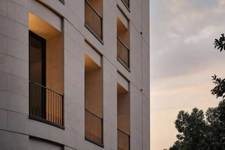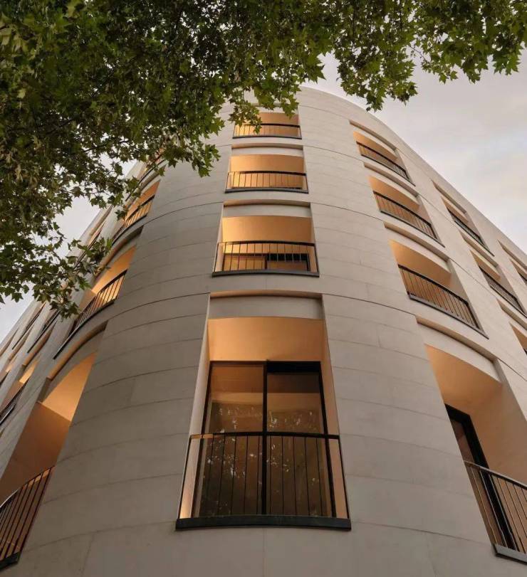 设计灵感源自建筑大师大卫·奇普菲尔德和卡洛·斯卡帕,整体风格低调且优雅,注重每一处材质的质感与空间的氛围。外墙采用与卢浮宫、凡尔赛宫相同的石材,这种石材因其不易风化的特性,让建筑在岁月流转中依然保持恒久的美感。